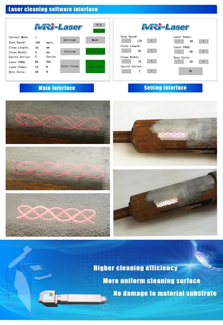 Jedinečný self-vyvinutý režim čistenia špirály, účinne vyhnúť kríženie cez zebra spôsobené tradičným čistením laserom.