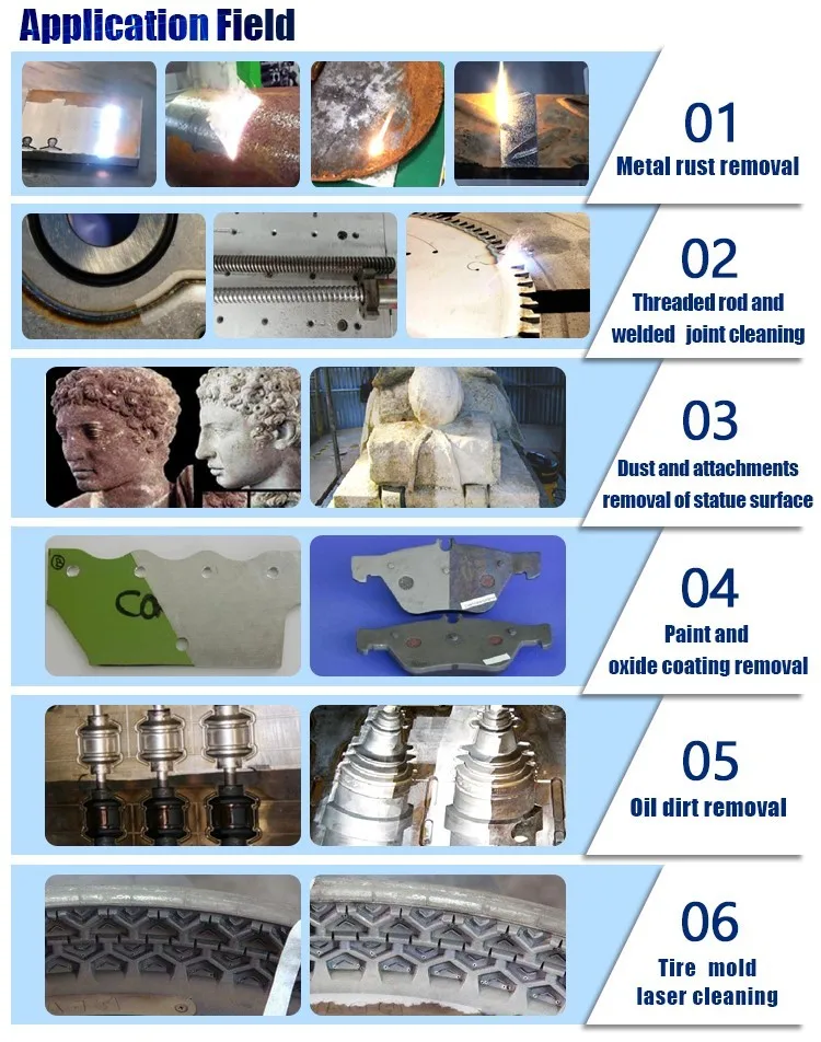Špeciálna vlastná laserová a galva skenerová hlava s vysokou rýchlosťou čistenia, ktorá spĺňa rôzne náročné aplikácie na vysokú úroveň čistenia laserom.