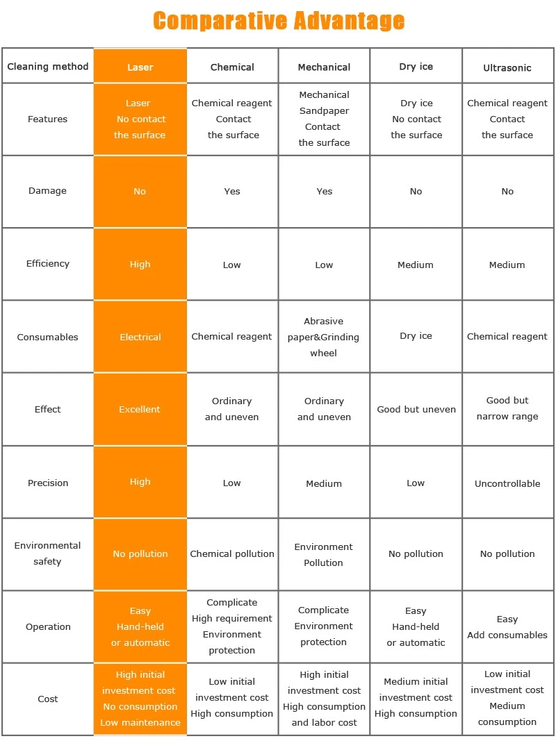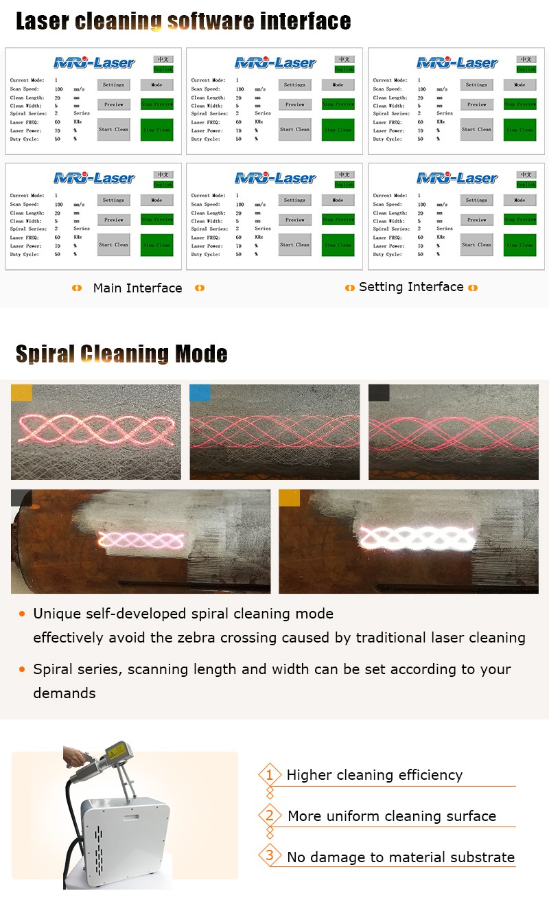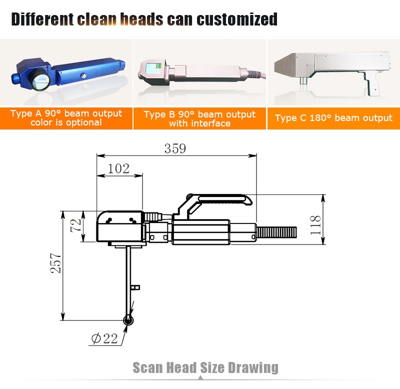 Tento laserový čistič je prenosný typ, ktorý je veľmi vhodný pre dielenské, domáce použitie. Dokáže vyčistiť malé plochy od hrdze, farby, mastnoty, oxidov a mnohých iných škvŕn. V tomto prípade je k dispozícii 20 W, 30 W a 50 W a optický kábel je možné prispôsobiť na maximálne 100 metrov. Čistiaca hlavica je veľmi ľahká, cca 1,5kg, vhodná na dlhodobú prevádzku.